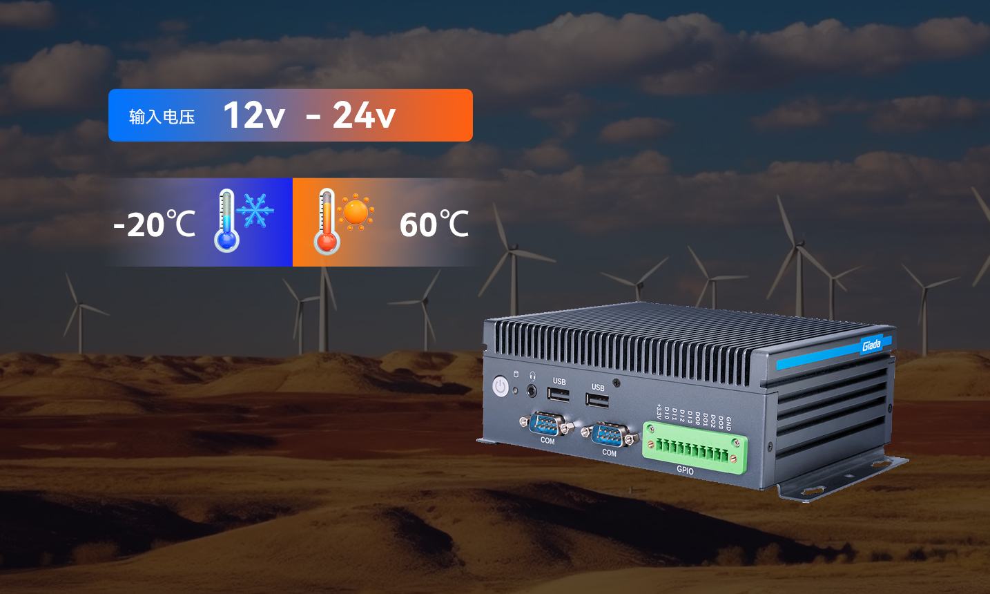 AF208支持-20°C至60°C宽温工作,12-24V宽电压输入设计稳定运行,无惧严寒、高温等极端气候挑战,稳定运行。