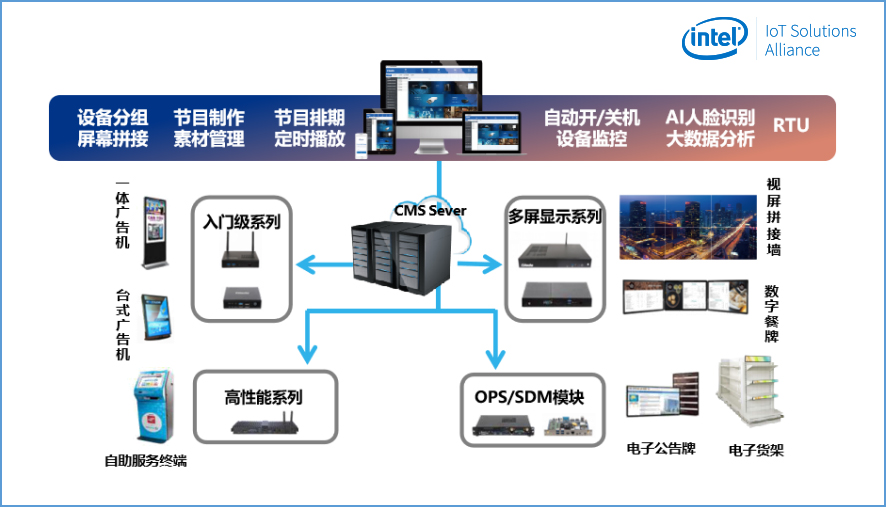 为了更好的迎合行业的发展趋势,向零售业输送前沿的营销理念和模式,驱动零售行业迈向数字化、智慧化的运营模式,long8-龙8科技经过多年的行业经验积累和对客户需求的探索,通过集成Intel®Movidius视觉识别技术和OpenVINOTMAI视觉学习技术,自主研发了一套GDSM智慧商显管理系统平台,加上long8-龙8科技多年来在商显行业的产品开发经验,已整合成为一套完整的智慧商显整体解决方案。目前GDSM智慧商显解决方案已成熟的应用于商超零售、品牌餐饮等多个行业,并获得了Intel®MRS市场方案认证。
