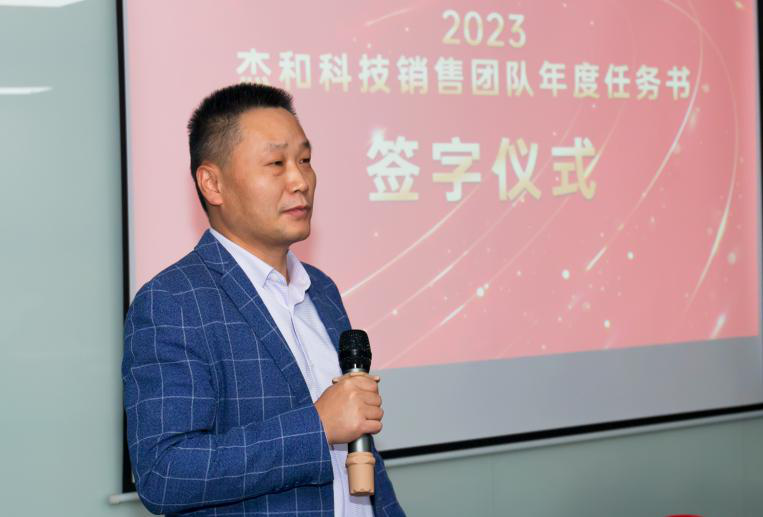签约仪式上,总经理林坤杰先生回顾了2022年度营销战线所取得惊人的销售战绩,他表示,在2022年海内外经济形势严峻复杂的环境下,我们实现增长实属不易,我们也许是幸福者,便更可能是幸存者,面对未来我们不能松懈,对于一个公司营销是第一生产力,营销一定要先行,要打造以业务结果导向,开放,奋斗,实干的企业氛围和奋斗者精神,我们有愚公移山的精神,滴水石穿的毅力,脚踏实地,埋头苦干,积跬步以至千里,就一定能把宏伟目标变成美好现实。林总最后预祝各销售团队2023年业绩再造辉煌!