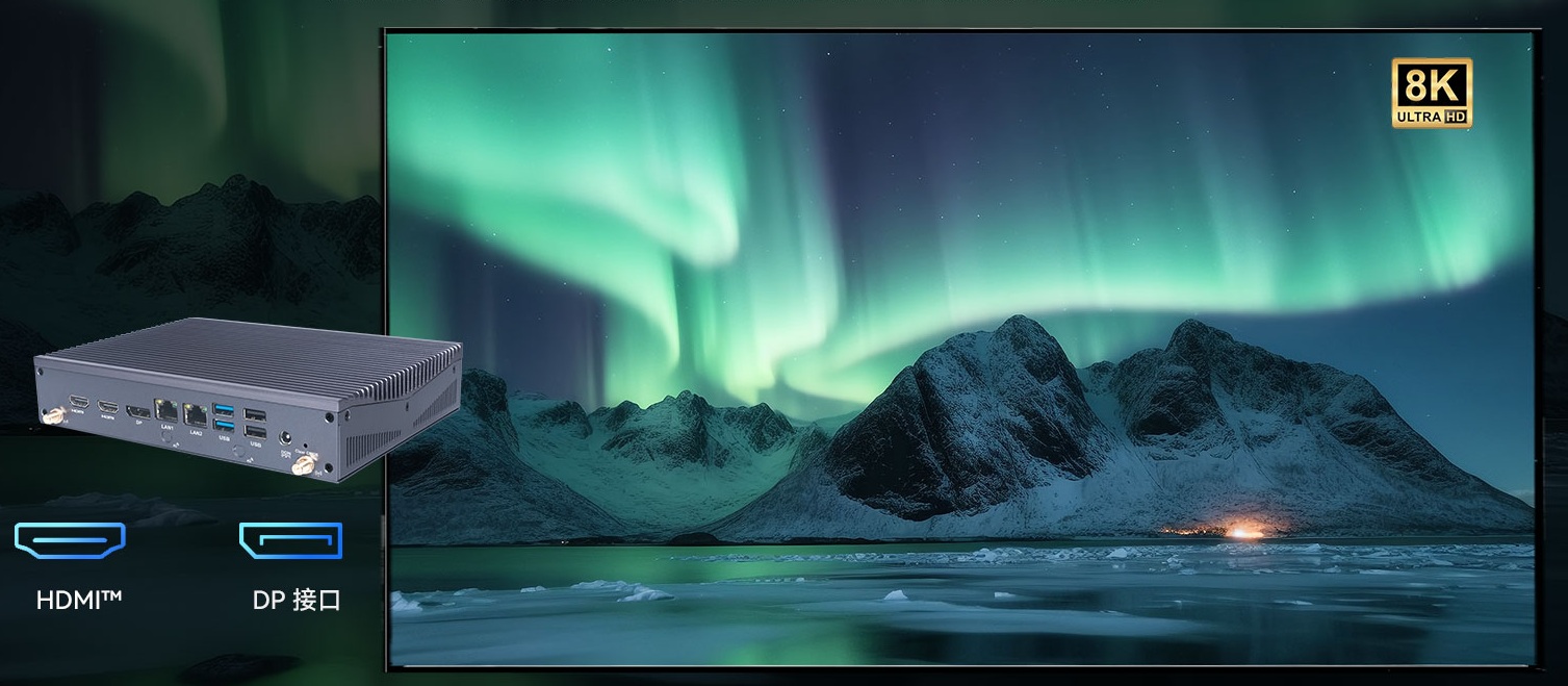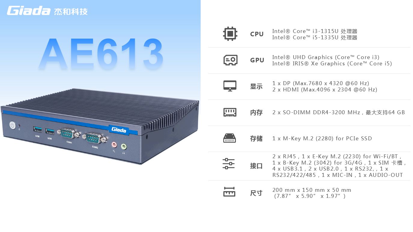 long8-龙8科技AE613支持Windows 11 (64bit) /Linux Ubuntu (64bit)系统,双千兆自适应RJ45网口,4 x USB3.1 (10 Gbps),2 x USB2.0,1 x RS232,,1 x RS232/422/485,1 x MIC-IN,1 x AUDIO-OUT,丰富的I/O功能接口,实现更多功能扩展。