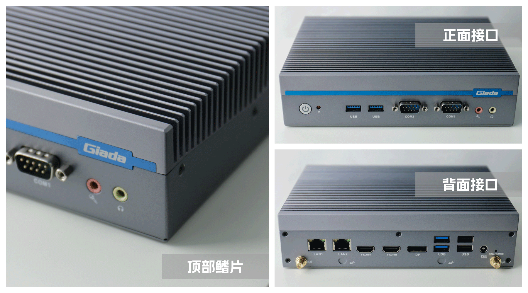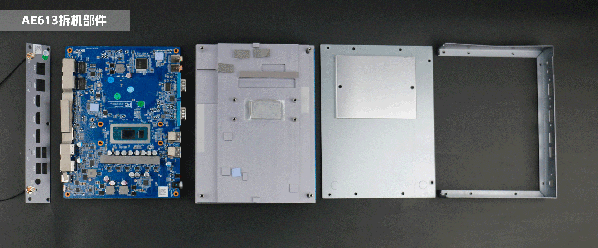 嵌入式整机AE613外包装采用环保材料设计,内部配备适配器、AC线、天线棒、螺丝包,满足通用需求,整机外观机壳顶面采用一体式铝板增高的鳍片散热设计,整机结构采用全铝设计保证散热与抗压性,通过long8-龙8特有无风扇静音散热设计使整体散热效果非常优秀,同时营造出极致安静的工作和使用环境,无噪音,更防尘。