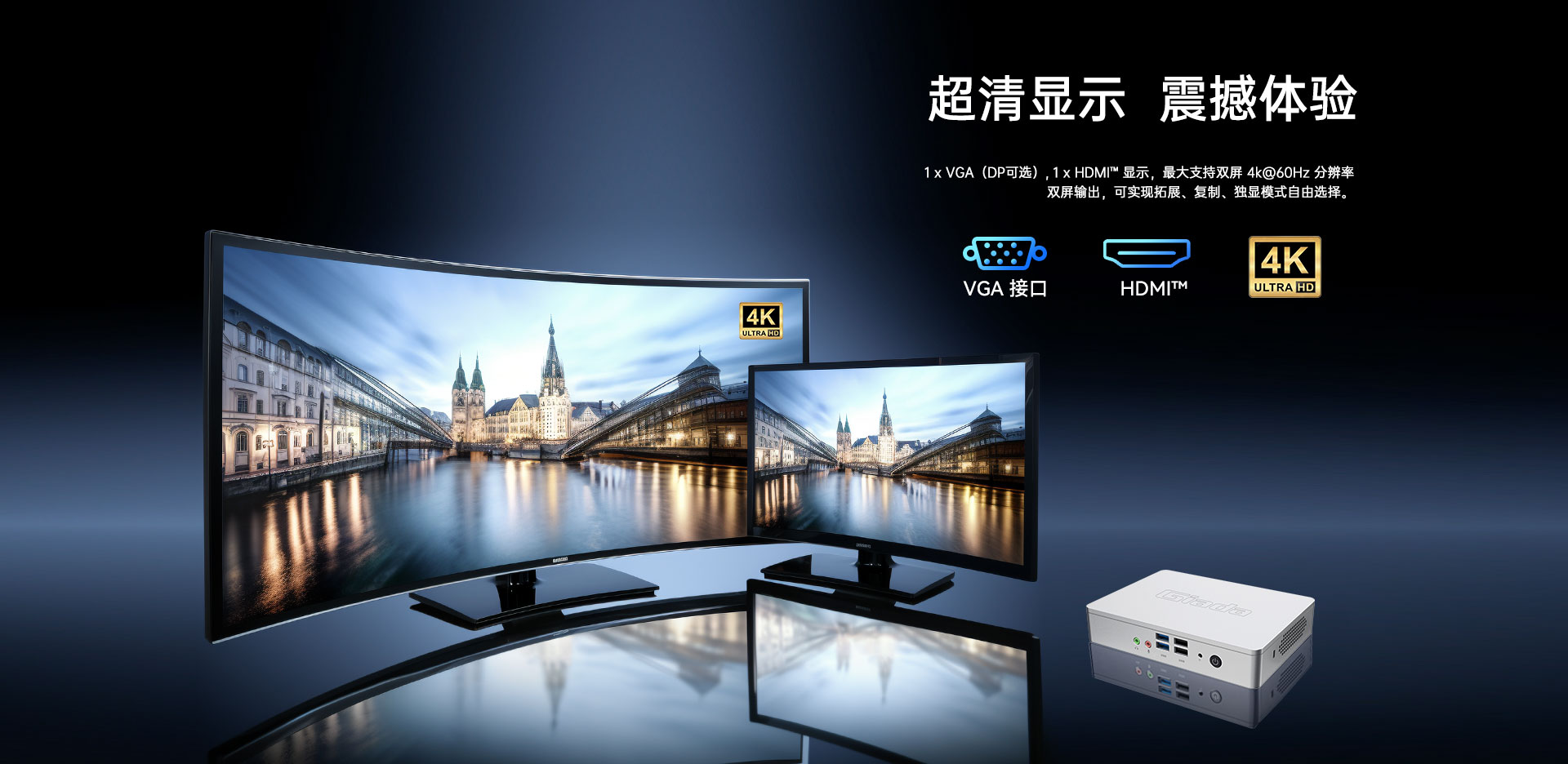 1 x HDMI,1xVGA/DP双视频接口